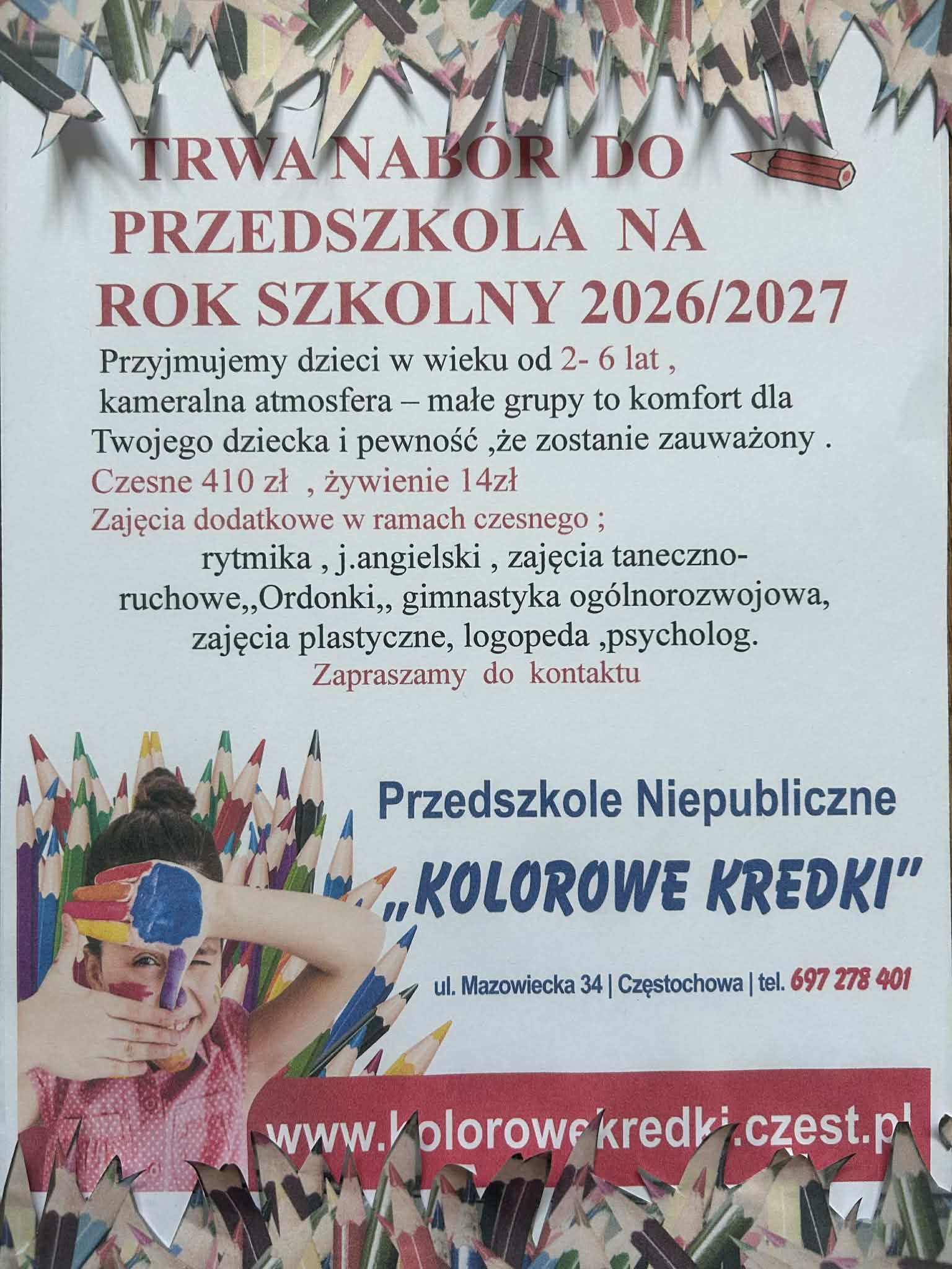 WSZYSTKICH CHĘTNYCH RODZICÓW ZAPRASZAMY DO KONTAKTU ZAPISY ROK SZKOLNY 2024/2025